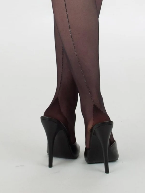 15 Denier naturel pant met zwarte naad en een subtiele zilveren lurex naad.