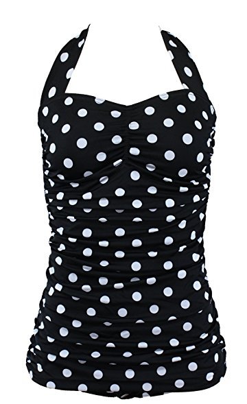 Leuk pinup badpak in fifties stijl in zwarte polkadots.