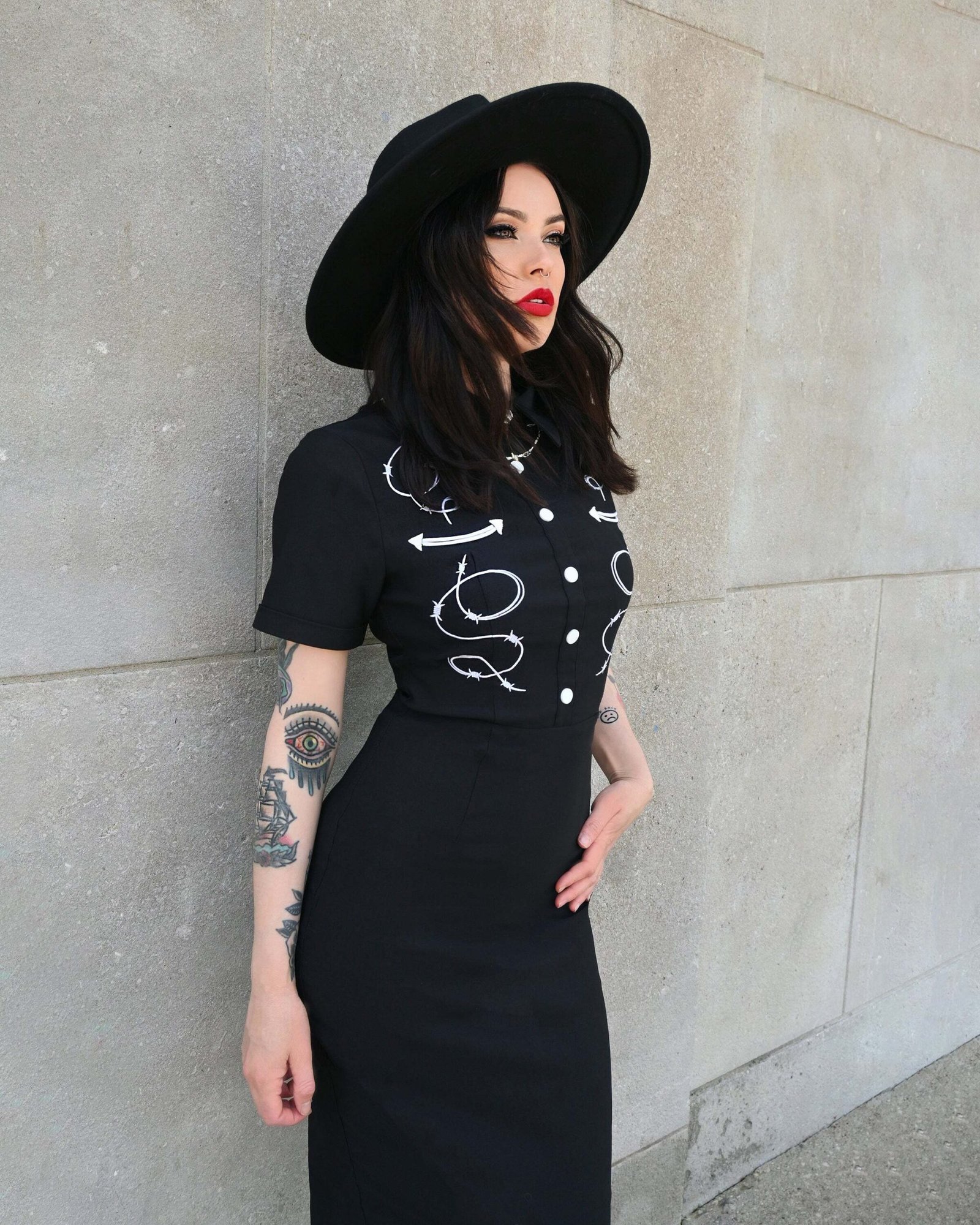 De Barbara Dress is een echte western, wiggle dress met borduursel en piping details.