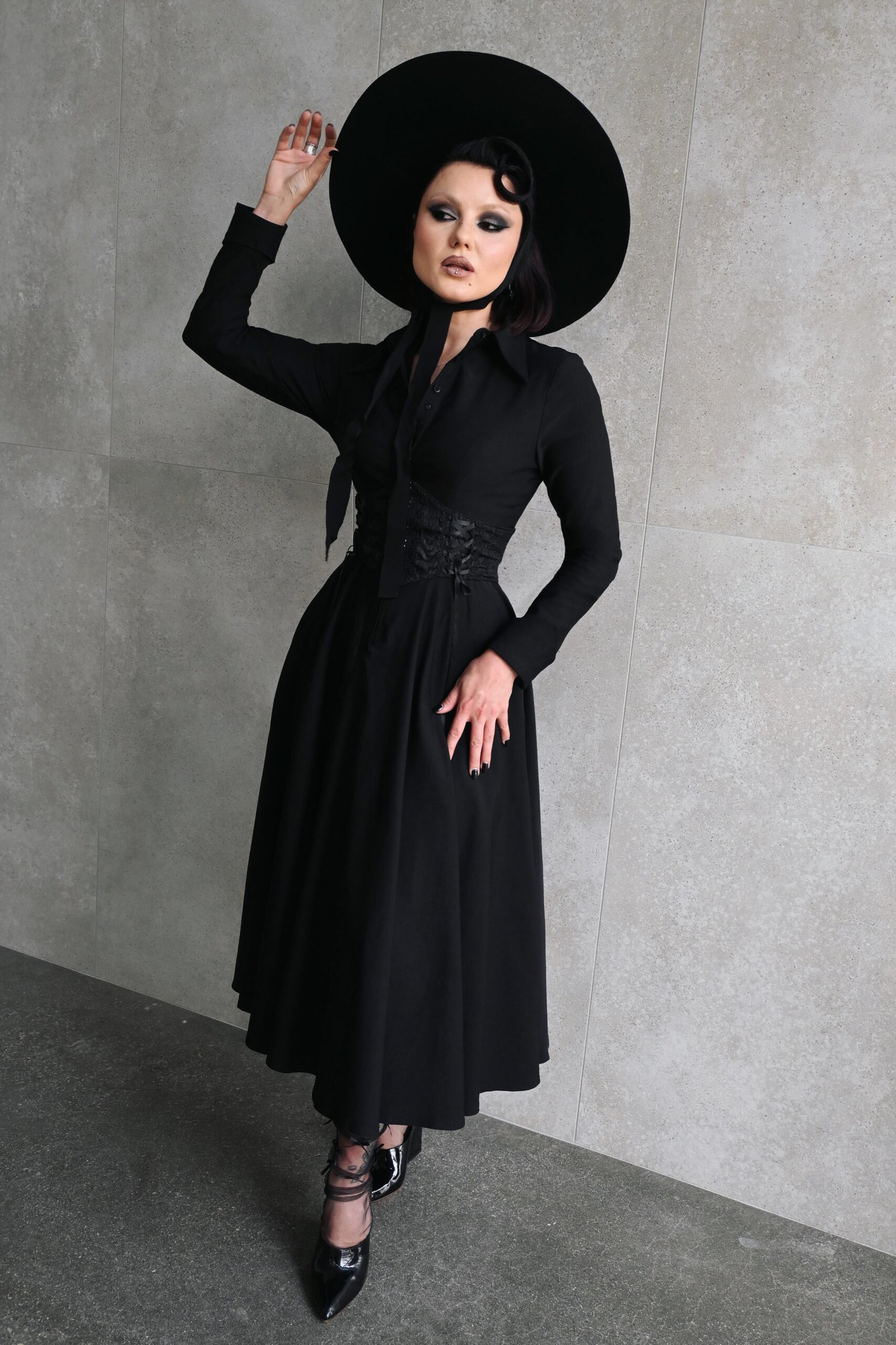 The Homemaker Swing Dress combineert klassiek met een vleugje Gothic romance.