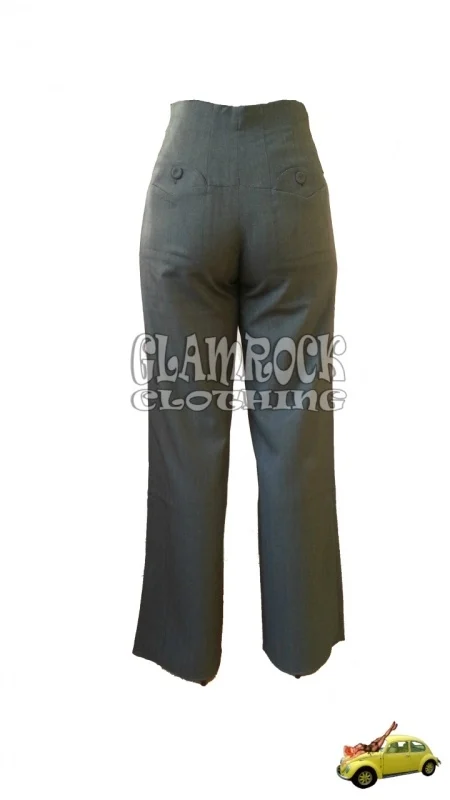Mooie broek met een hoge taille in een zwart/ grijze stof met chicken feet motief.