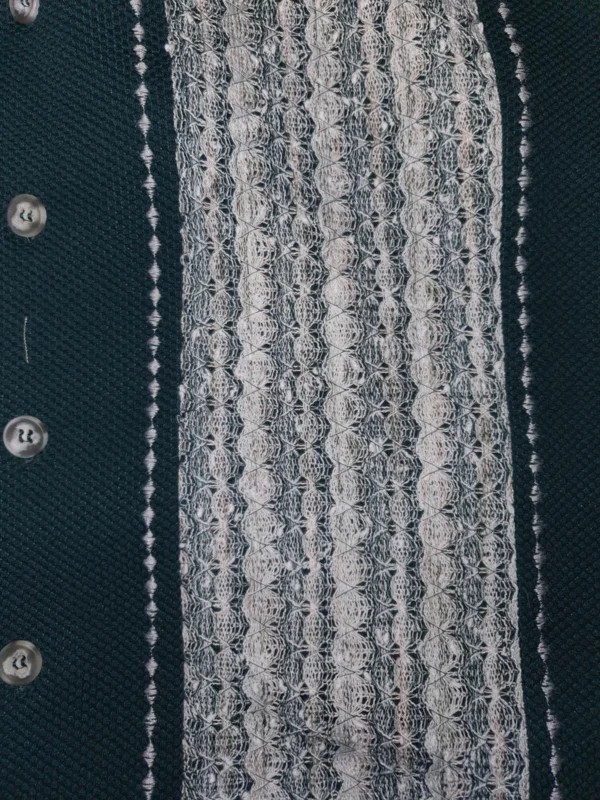 Deze groene versie heeft grijze panelen met een ingewerkt motief.
