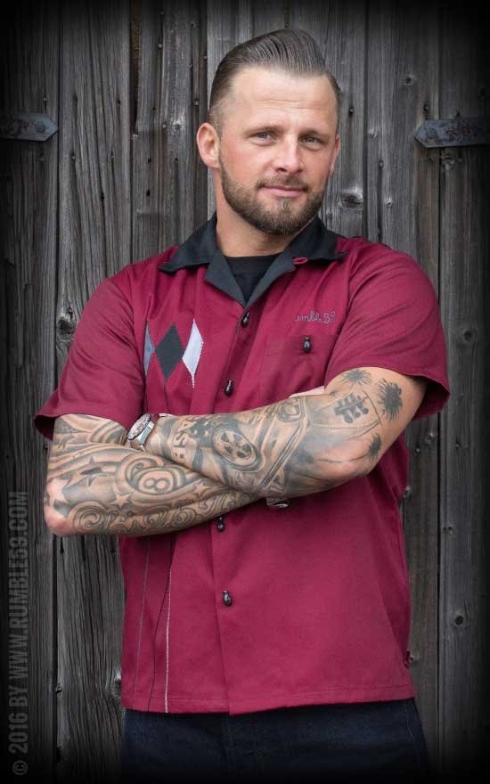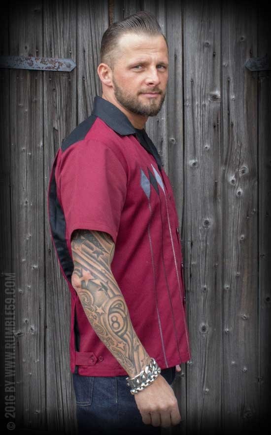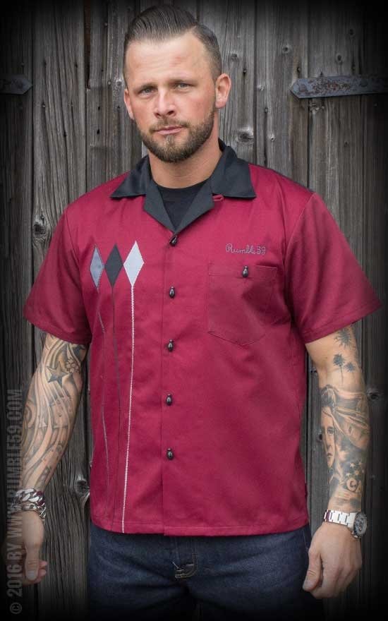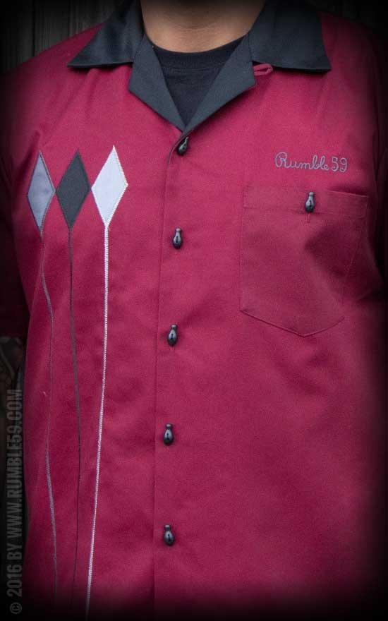 Inspired by the bowling shirts of the 50s, this Rumble59 shirt is true to the classic style a littler shorter and practical for throwing a bowl or just sipping a great cocktail.