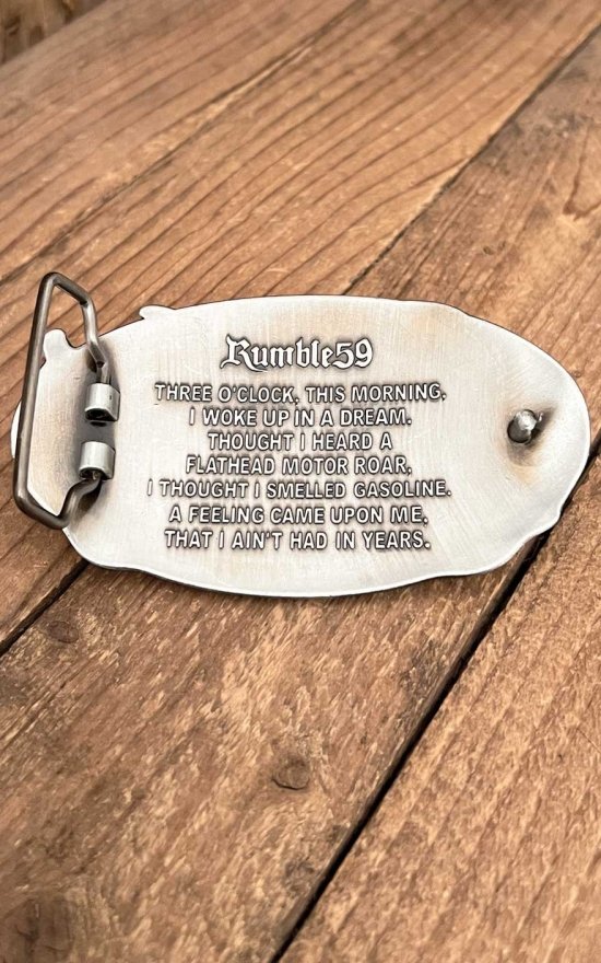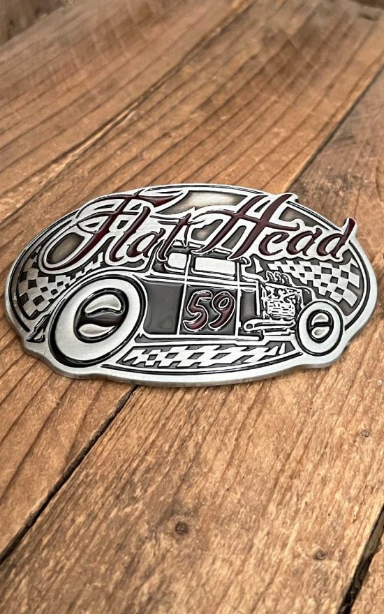 The front of this buckle convinces with the black painted hotrod, which is framed by “Checkered Flags”.