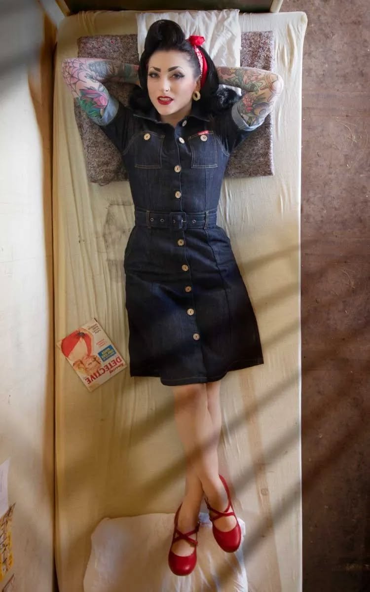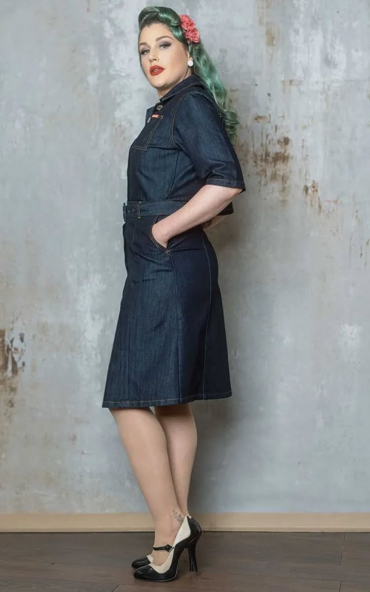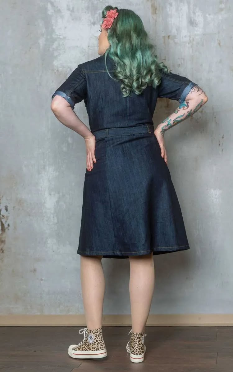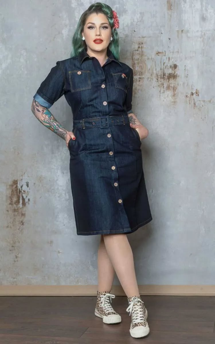 This great denim dress should be in the closet of every pin-up and every rockabella! Inspired by women’s workwear in the 50s, it is made from high-quality stretch denim and is therefore an absolute must-have.