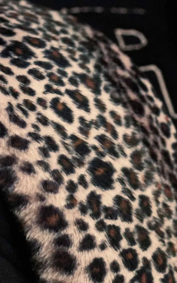 Special attention should be paid to the sleeves, which are made of soft panne velvet with a leopard pattern.