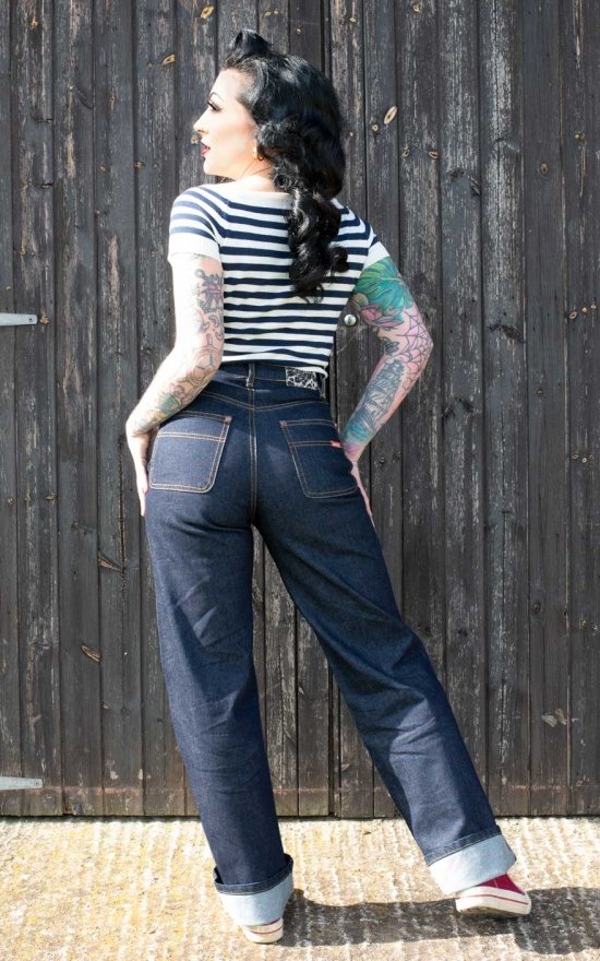 The dark blue Marlene denim pants are made of cotton and at 11oz offer just the right weight for a very comfortable feel.