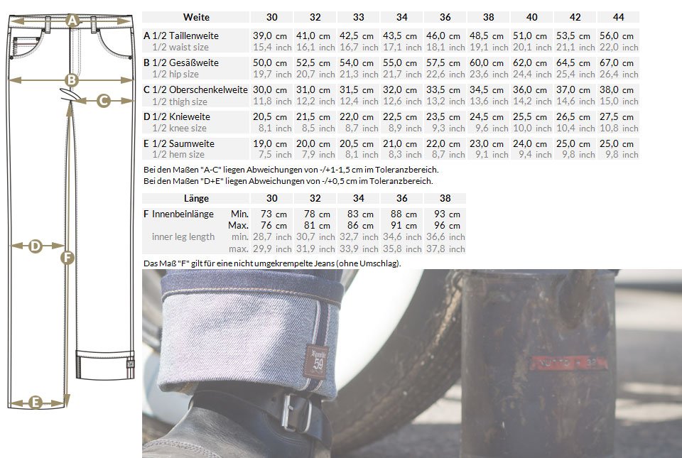 - Info: The dimensions in the measurement chart are measured WITHOUT turn-up!